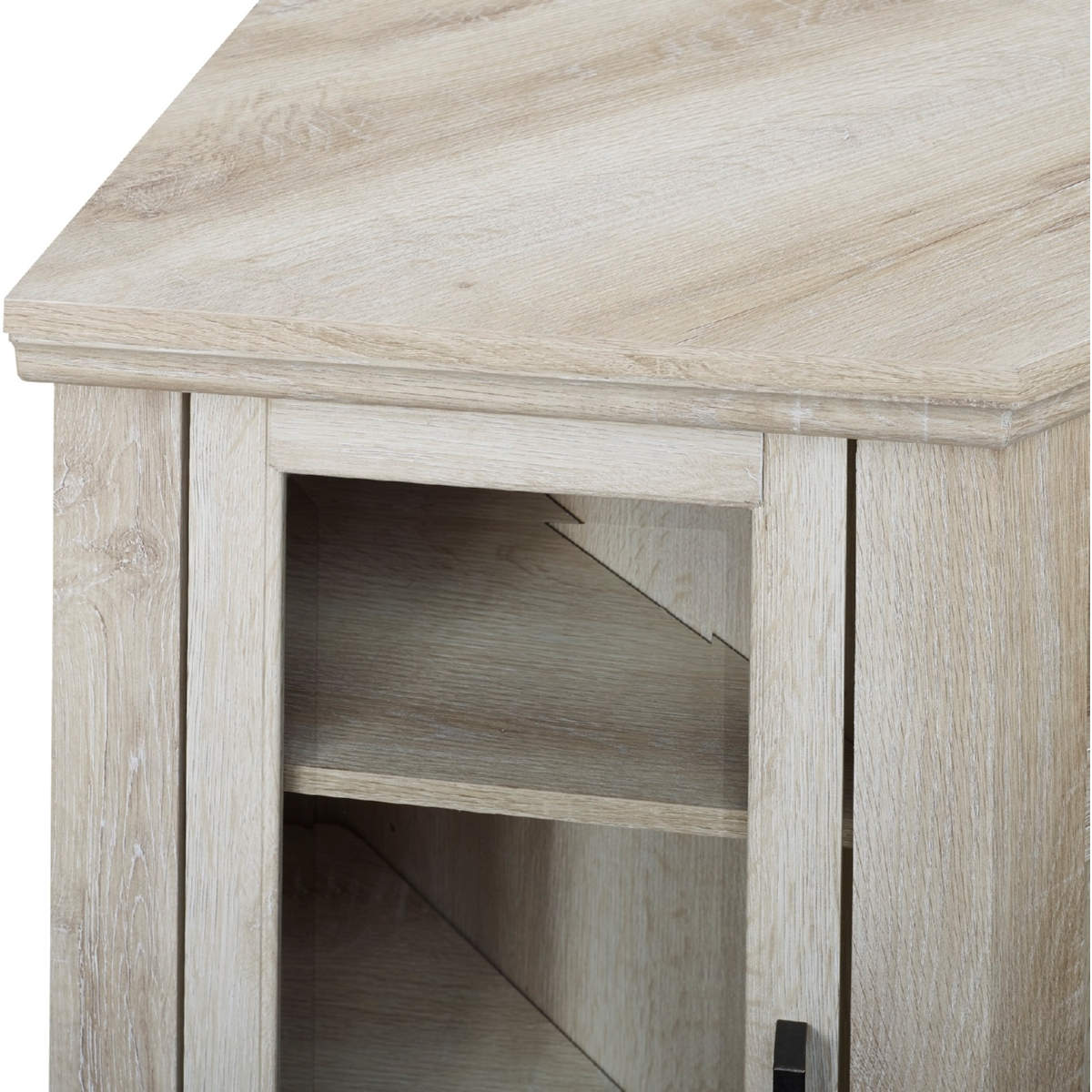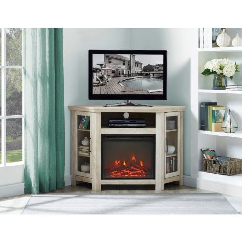 Walker Edison W48FPCRWO 48" Wood Corner Fireplace TV Stand Media Console White Oak