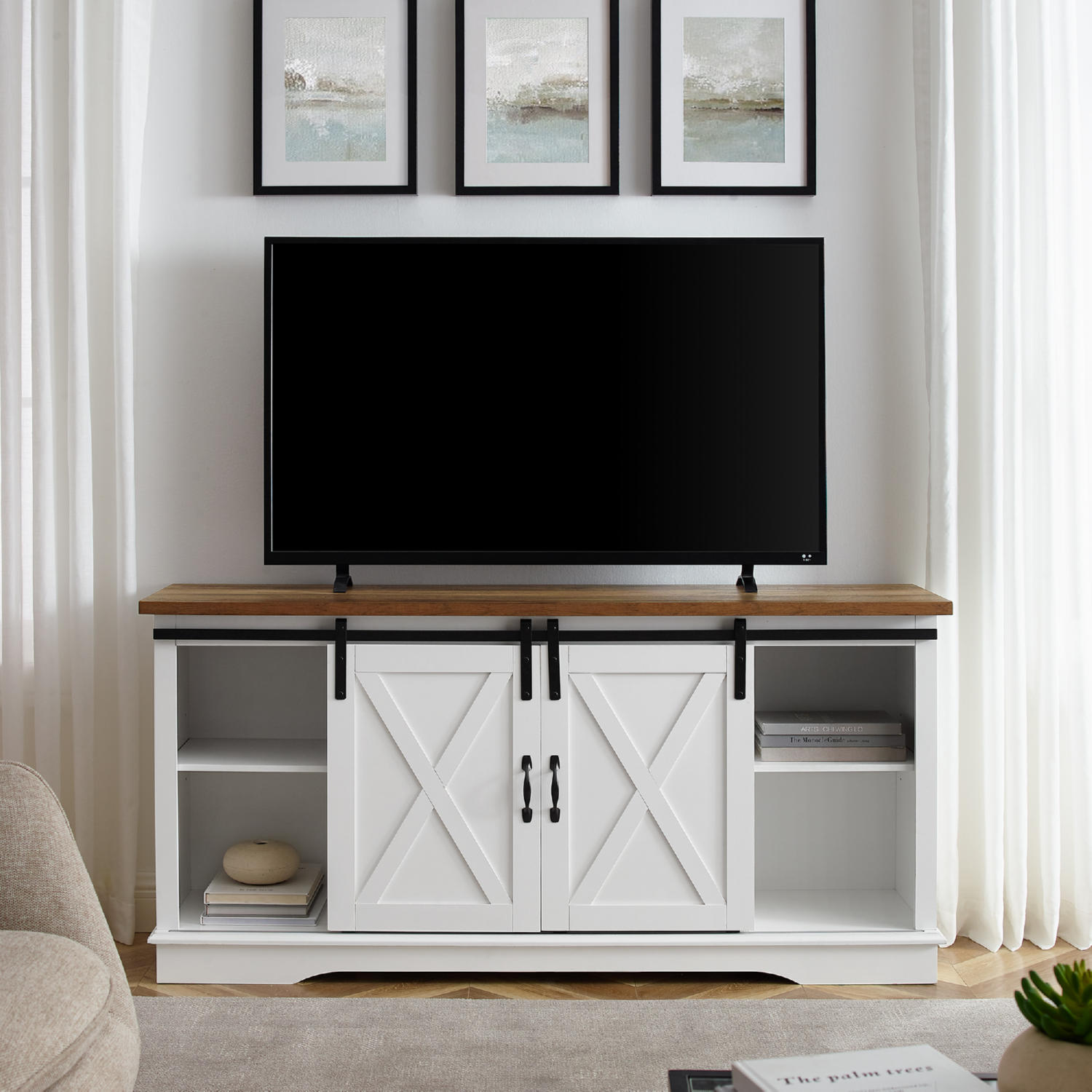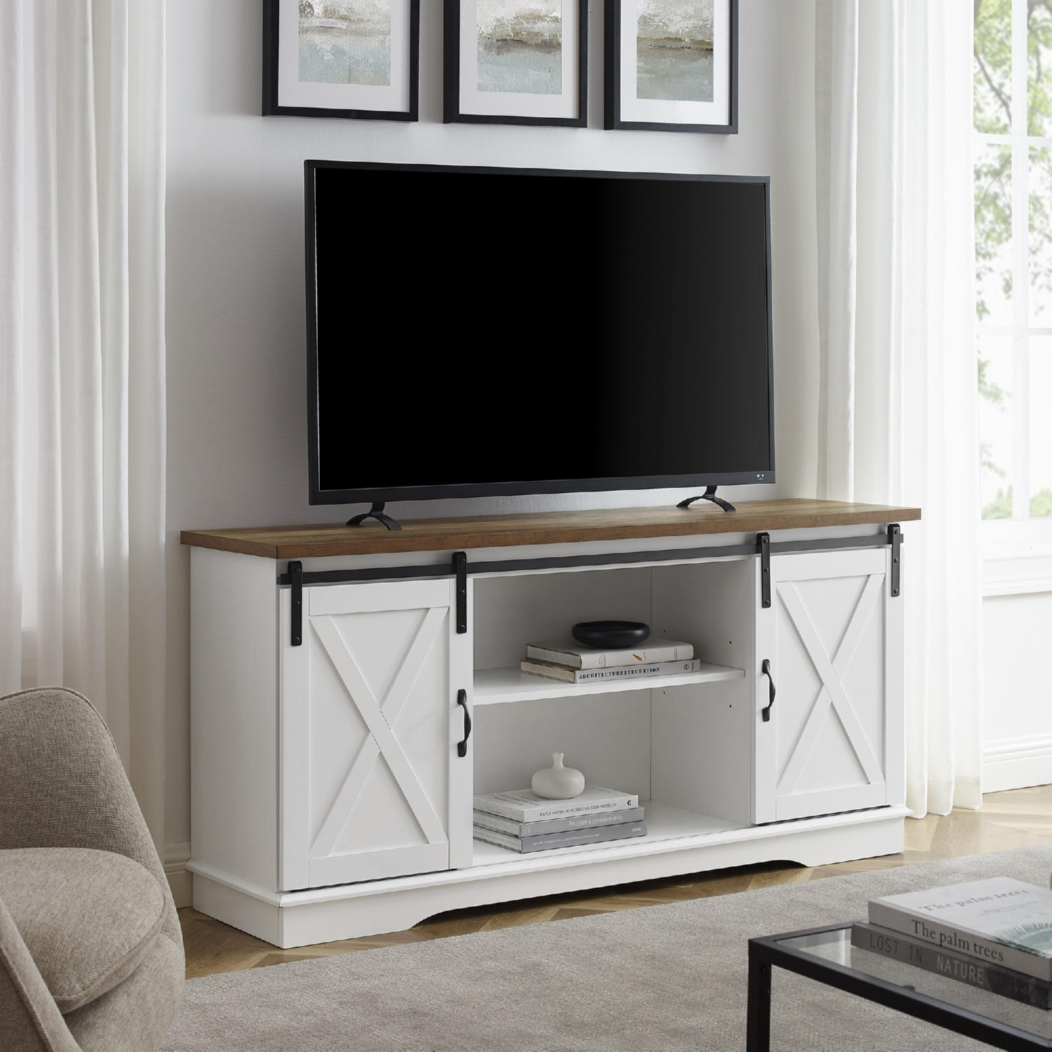 Walker Edison 58" Modern Farmhouse TV Stand in White & Rustic Oak