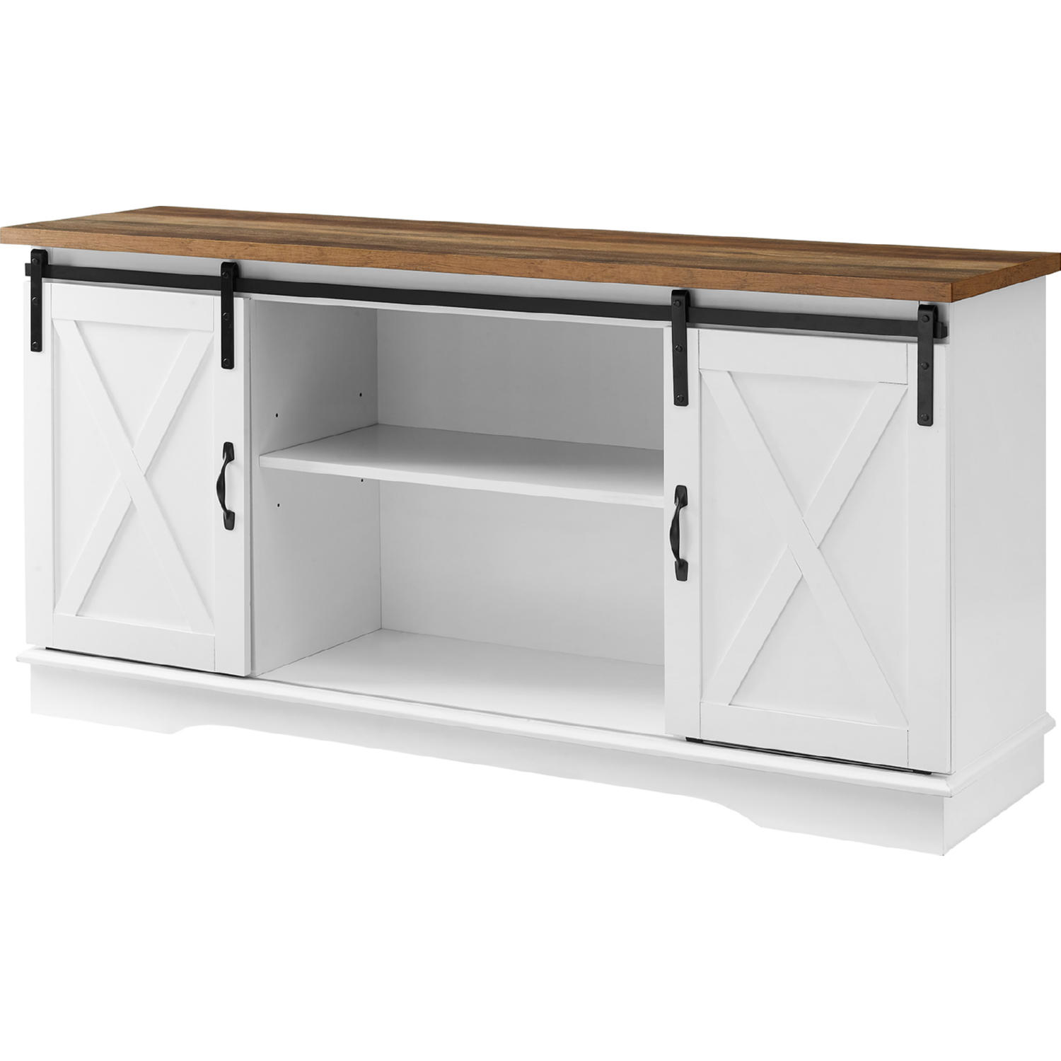 Walker Edison W58SBDSW 58" Modern Farmhouse TV Stand White Rustic Oak