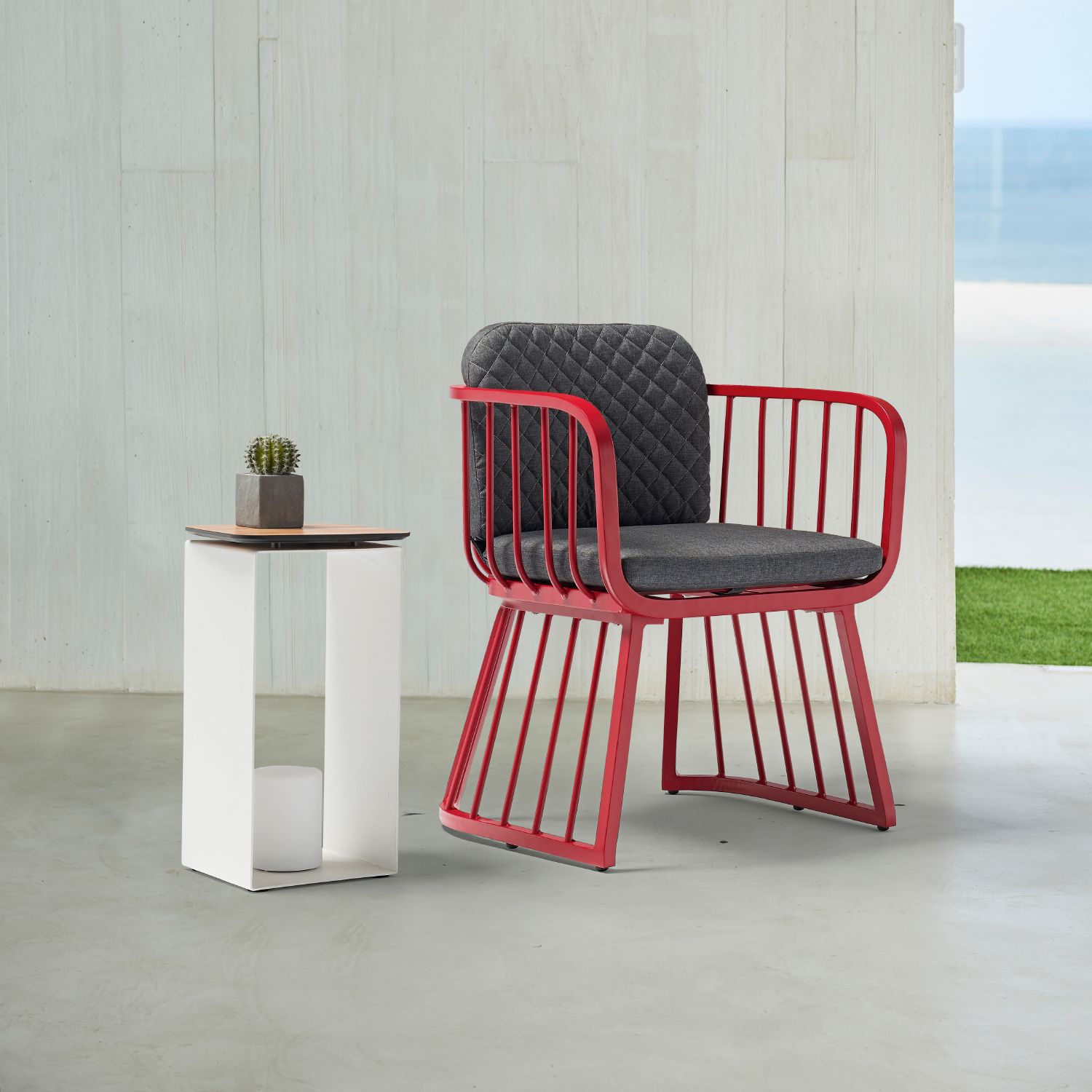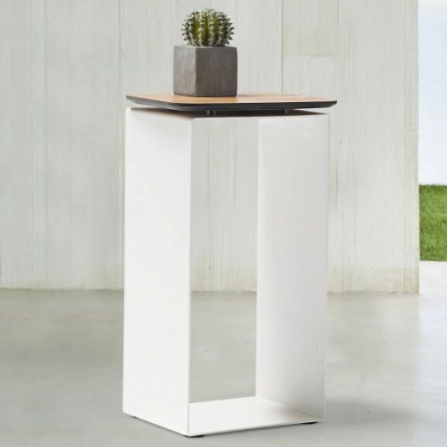 Whiteline Modern Living ST1731-WHT Petunia Outdoor Side Table White Powder Coated Metal & Walnut