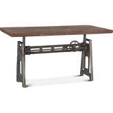 World Interiors Artezia 62" Adjustable Crank Drafting Desk in Natural Finish Teak & Iron