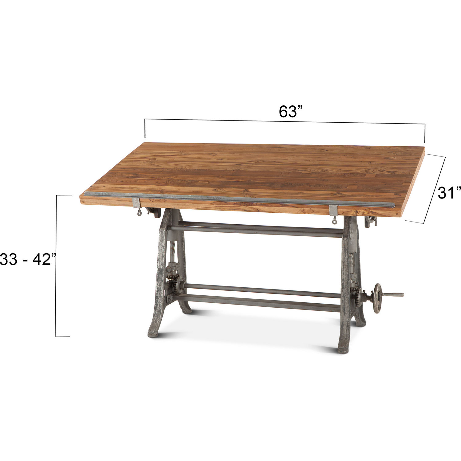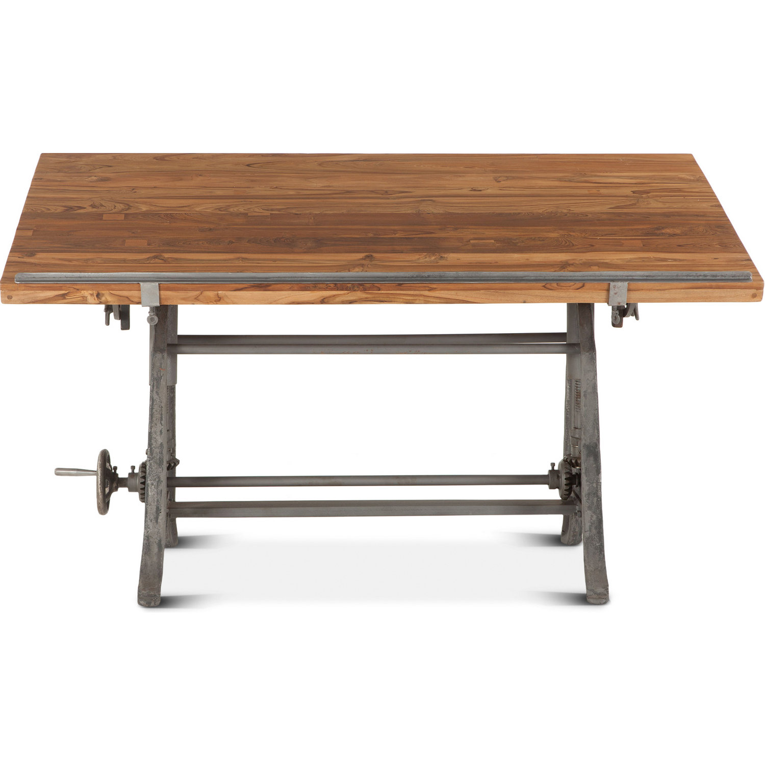 World Interiors ZWAT62 Artezia 62" Adjustable Crank Drafting Desk Natural Finish Teak Iron