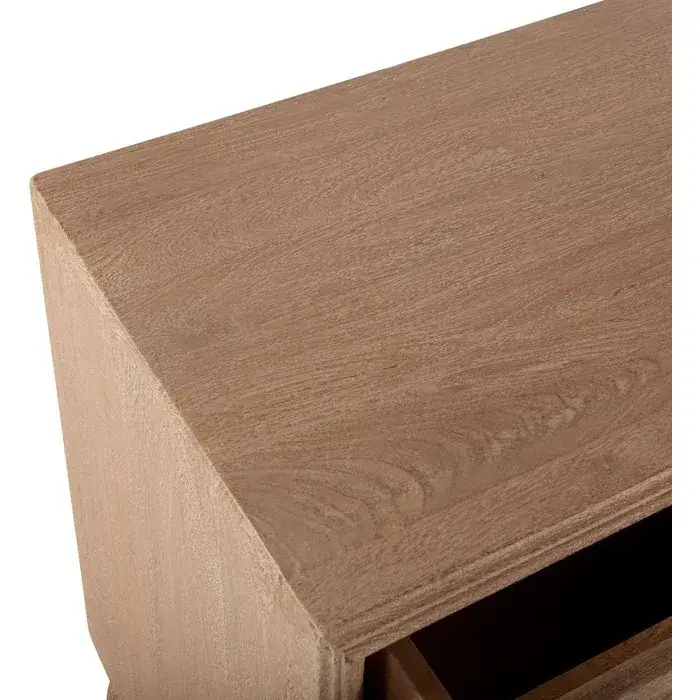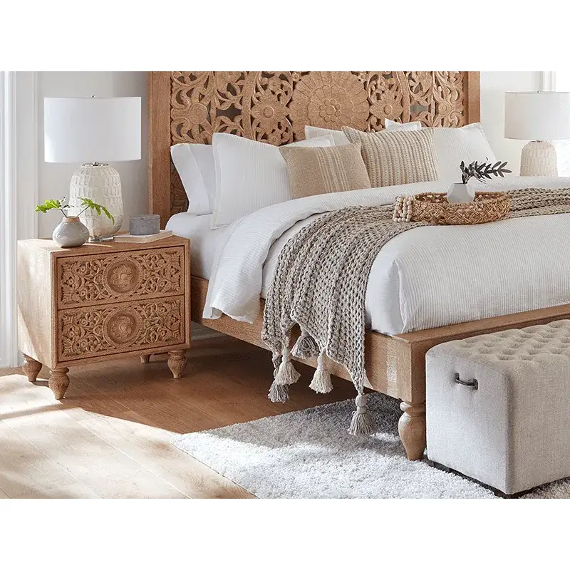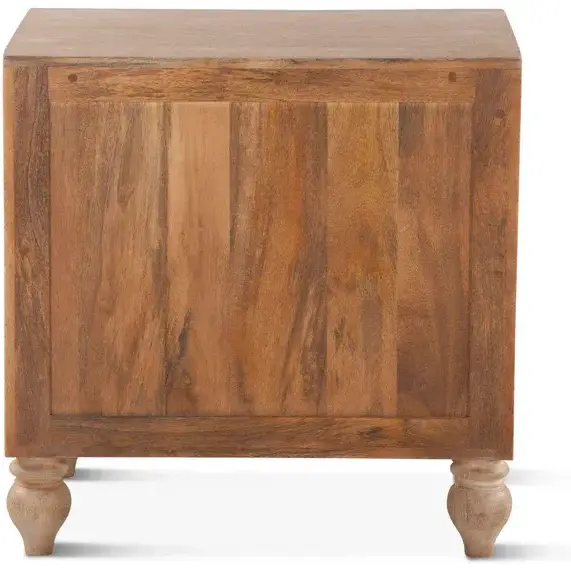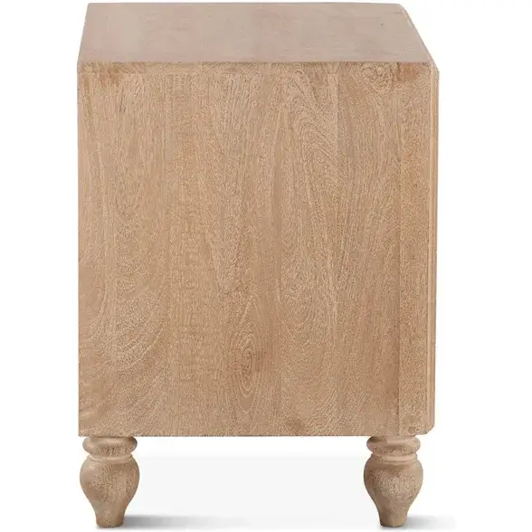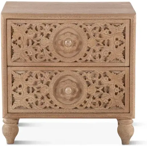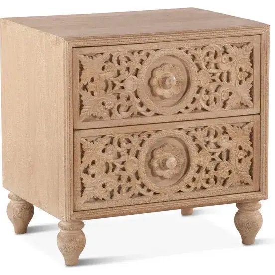 World Interiors Haveli Nightstand in Geometric Hand Carved White Wash Finish Mango Wood