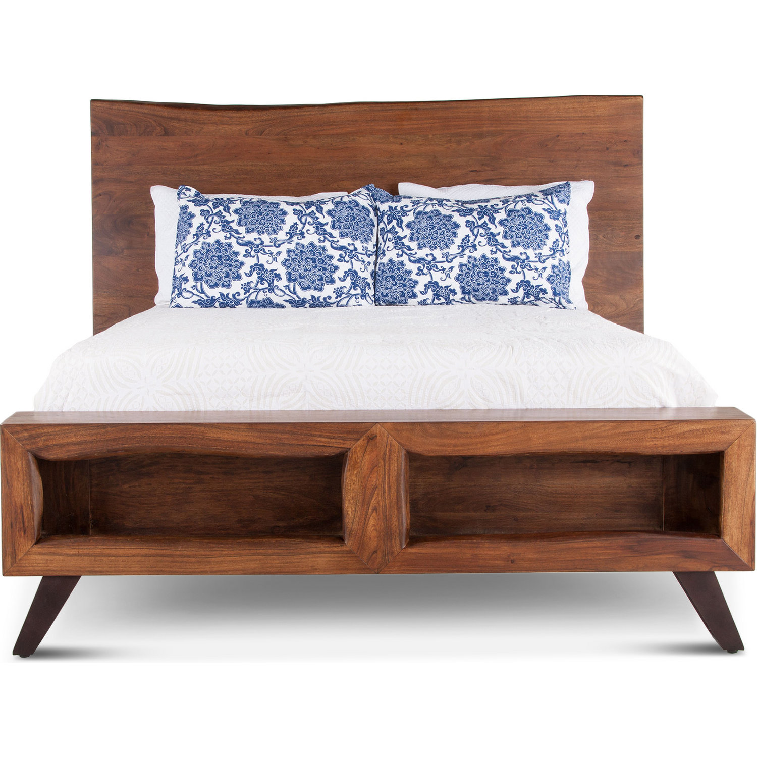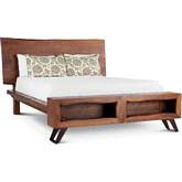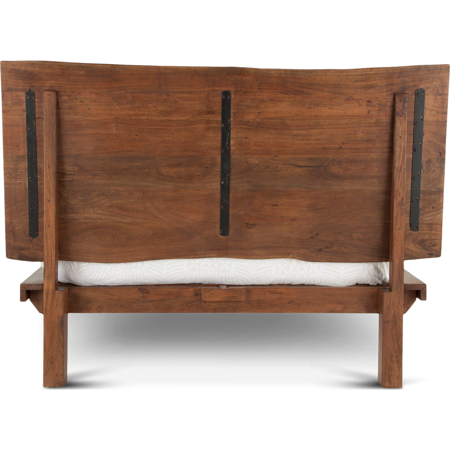 World Interiors Nottingham Queen Bed in Walnut Finish Live Edge Acacia Wood & Iron