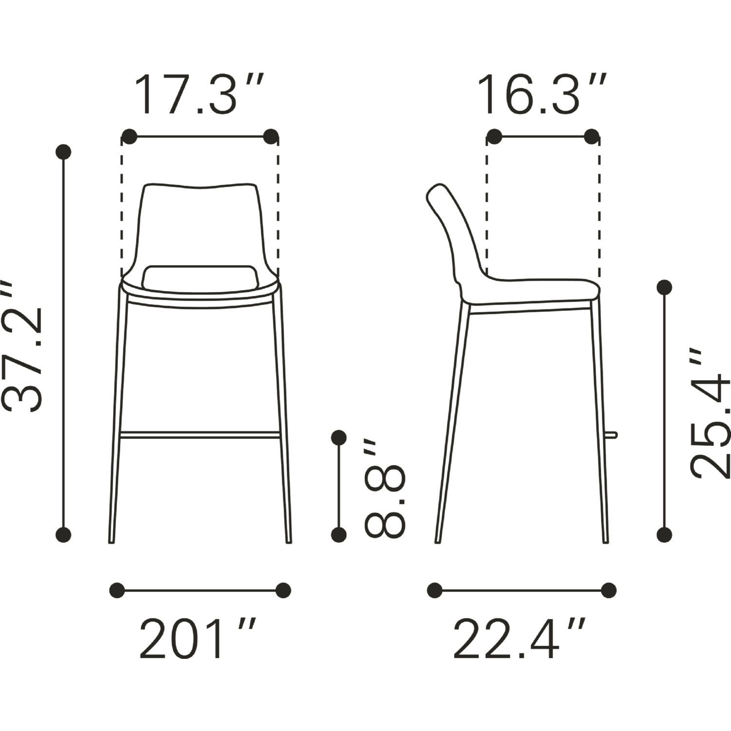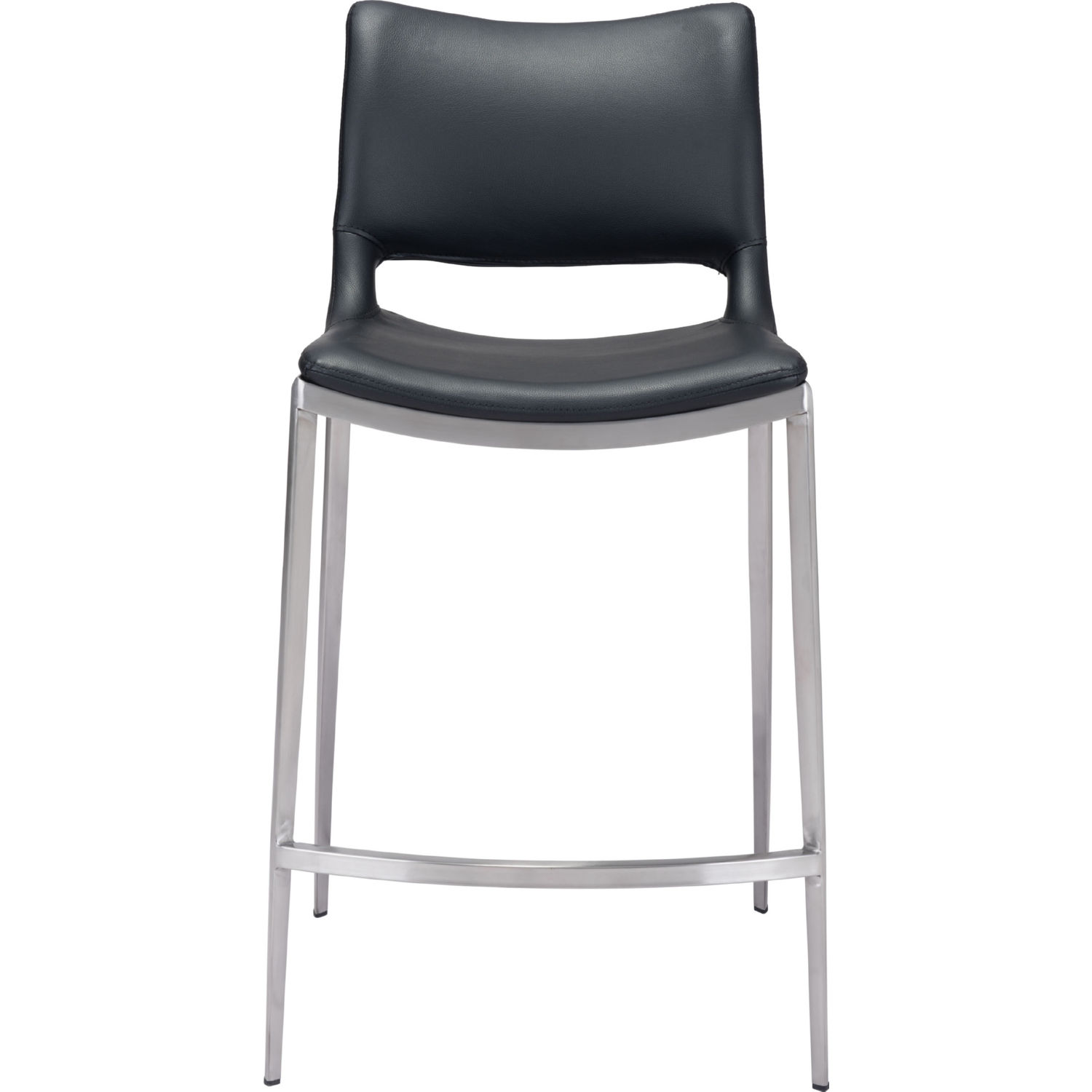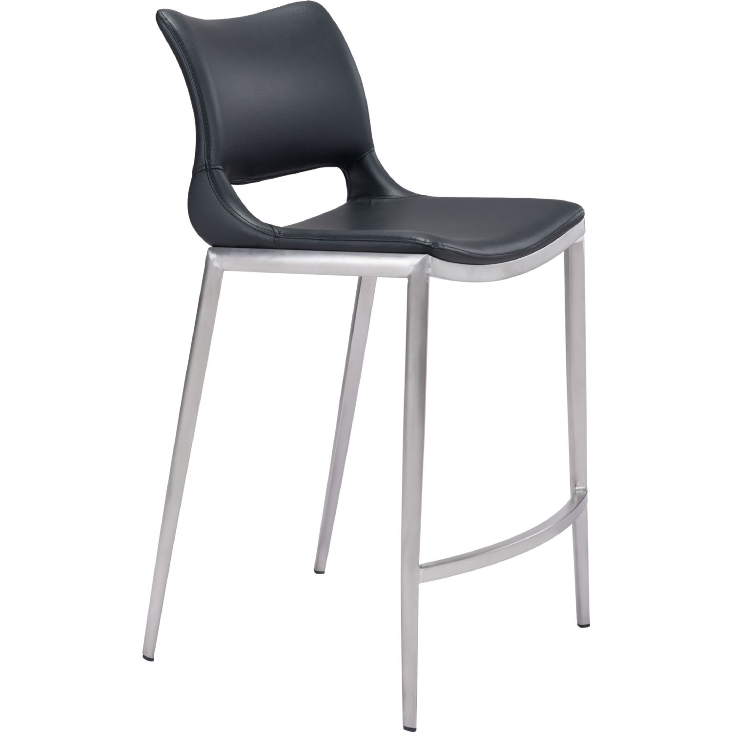 Zuo 101391 Ace Counter Chair Black & Brushed Stainless (Set of 2)