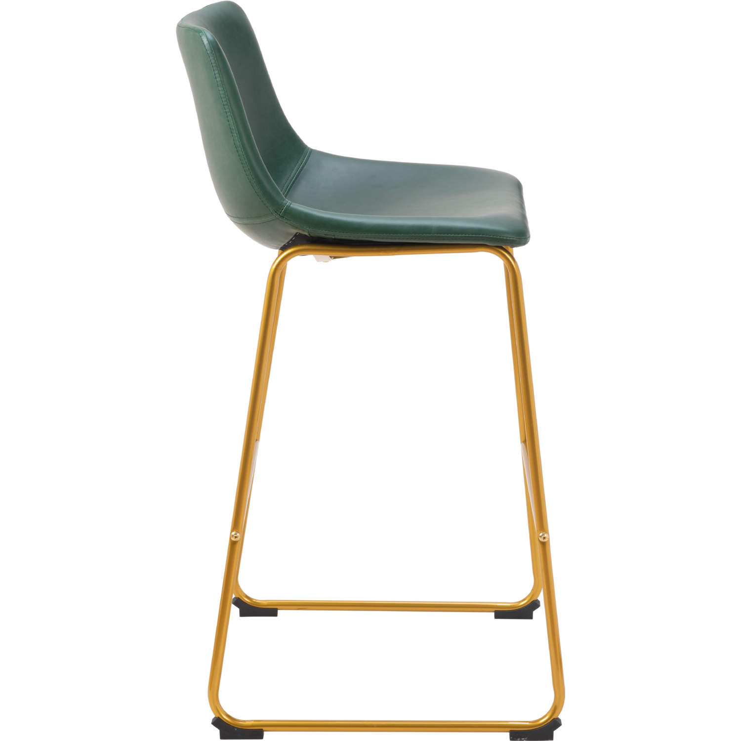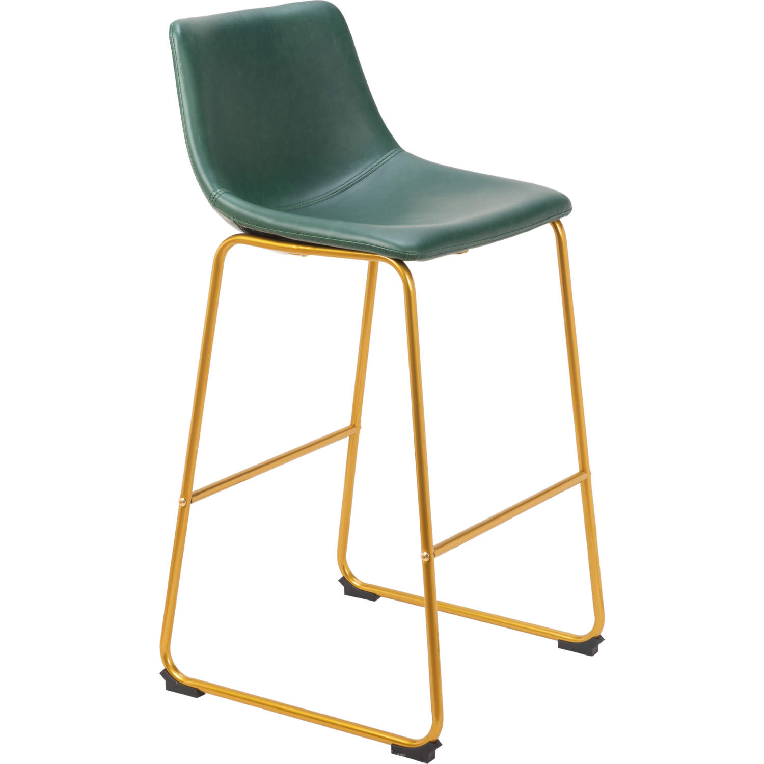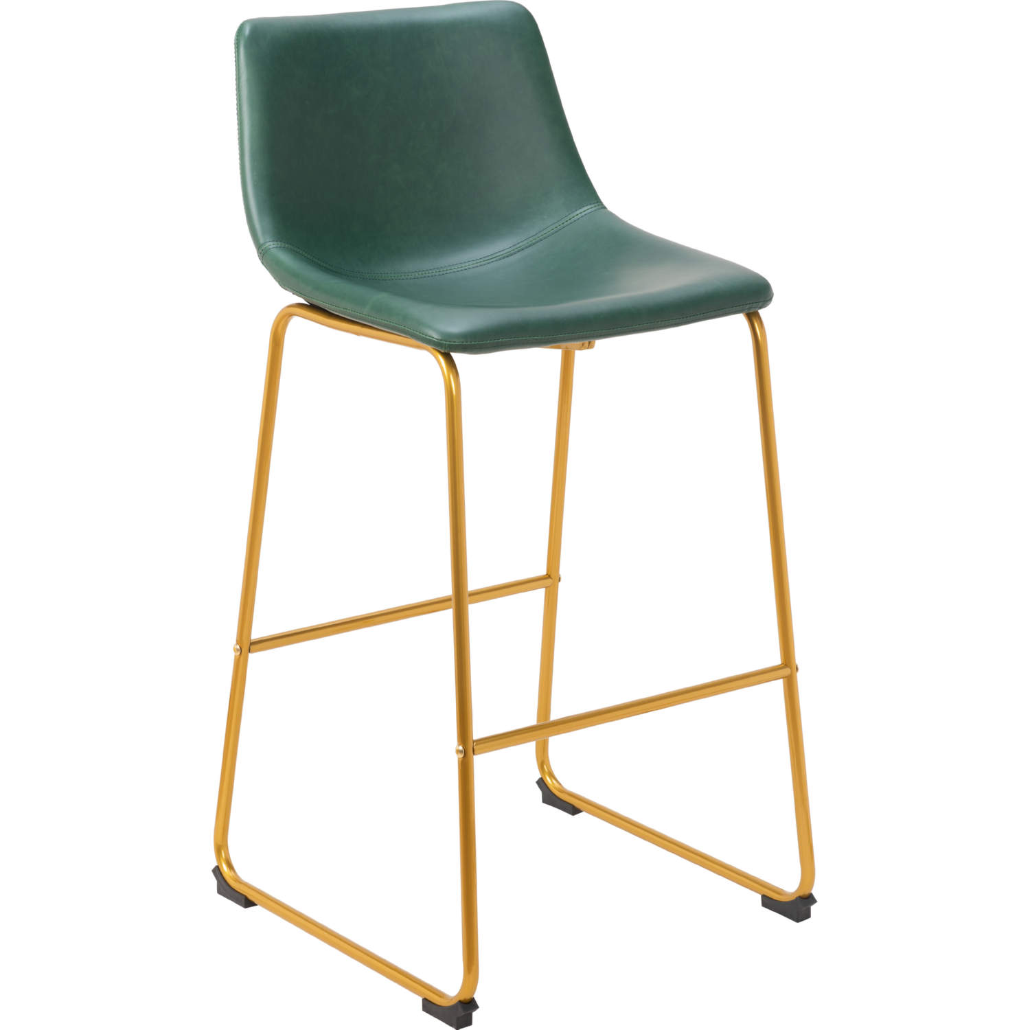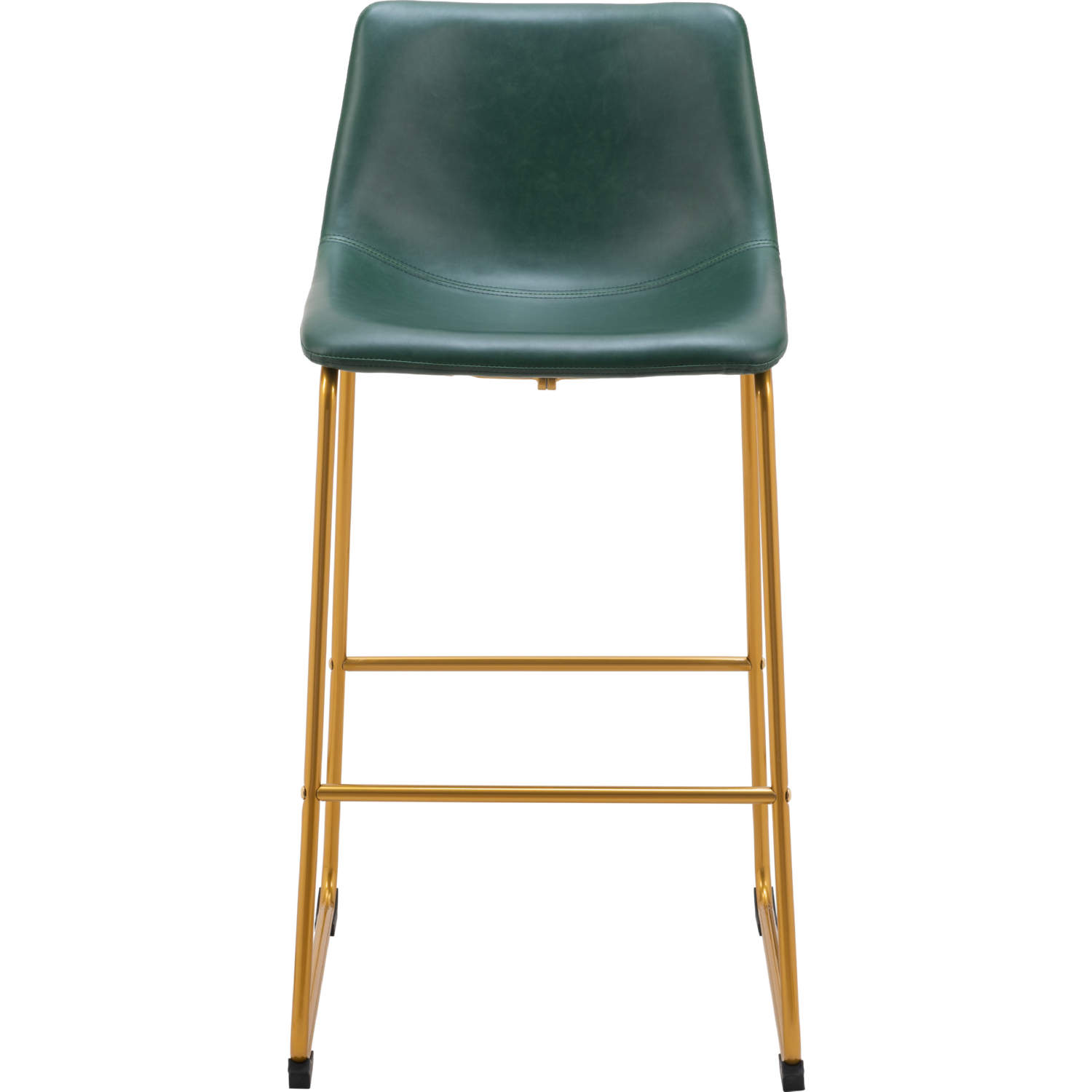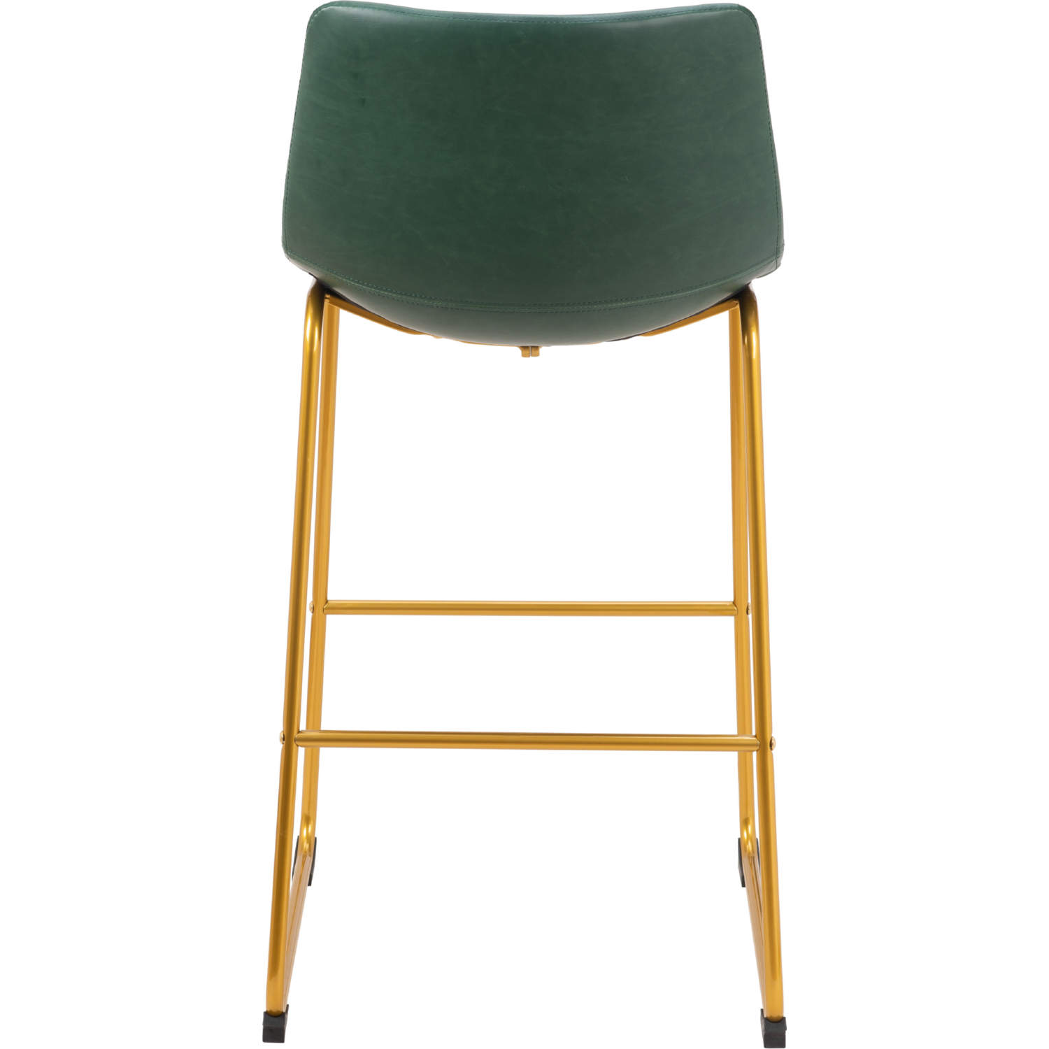 Zuo Augusta Bar Stool in Green Leatherette & Gold Finish Steel (Set of 2)