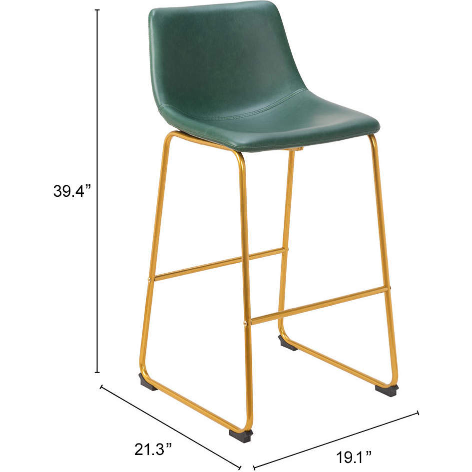 Zuo 109961 Augusta Bar Stool Green Leatherette Gold Finish Steel (Set of 2)