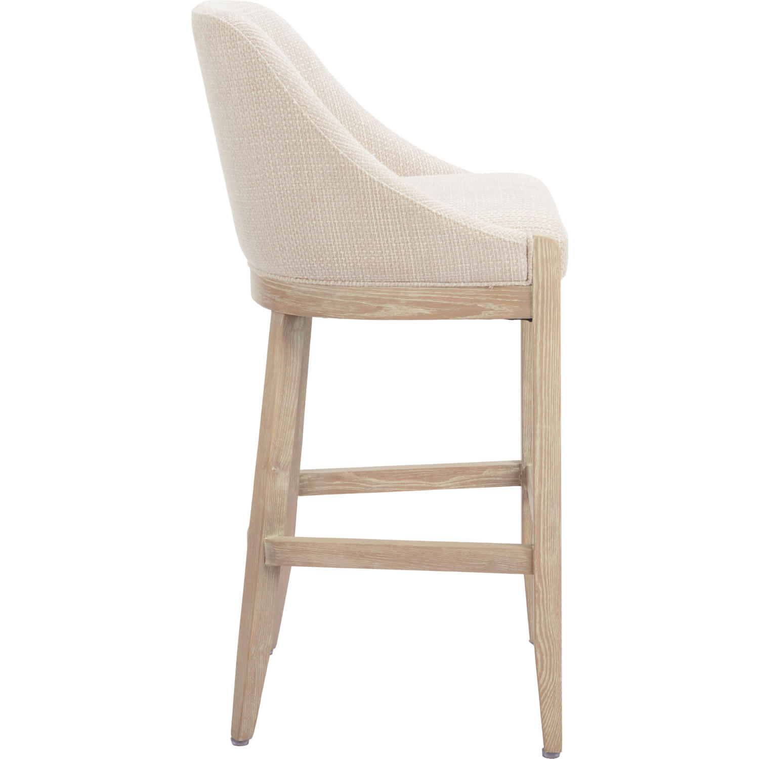 Zuo Calmo Bar Stool in Textured Beige Fabric & Natural Finish Wood