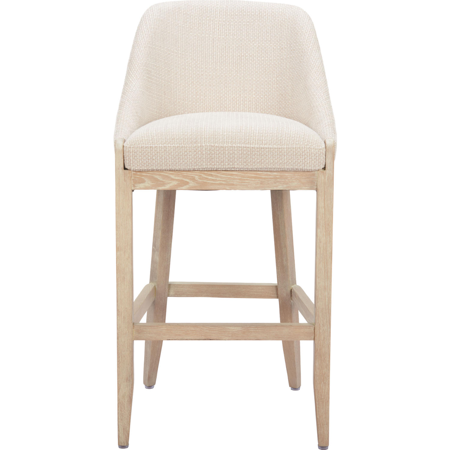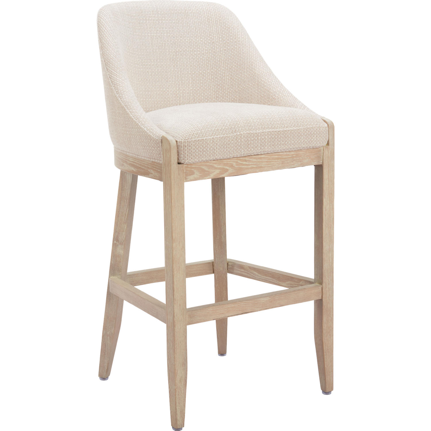 Zuo 110647 Calmo Bar Stool Textured Beige Fabric Natural Finish Wood