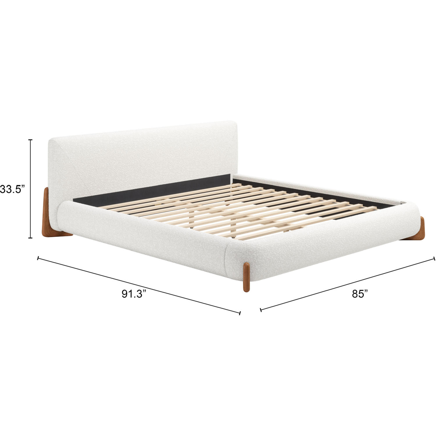 Zuo Baris King Bed in Textured Ivory Fabric & Walnut Finish