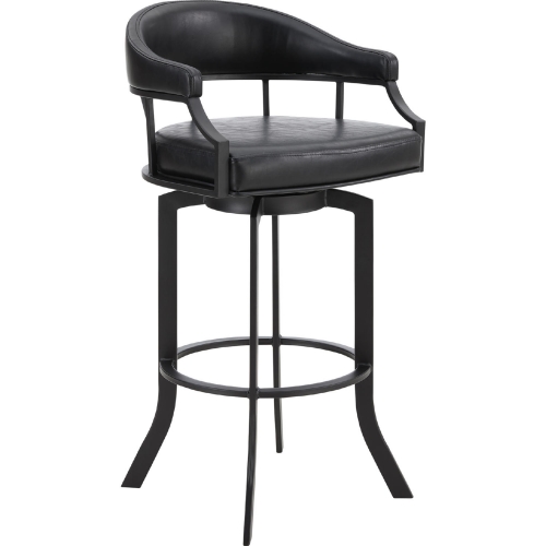 Armen Living Pharaoh 30" Swivel Bar Stool in Black Leatherette & Black Metal