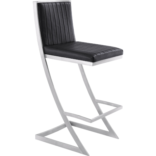 Armen Living Pinellas 30" Bar Stool in Vintage Black Leatherette & Brushed Steel