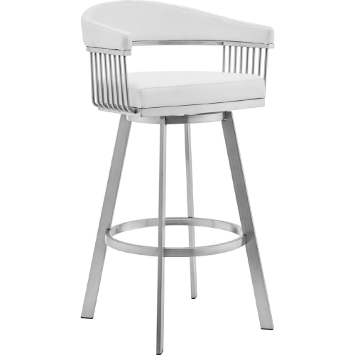 Armen Living Bronson 30" Swivel Bar Stool in White Leatherette & Brushed Stainless