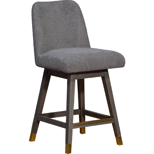 Armen Living Amalie Swivel Counter Stool in Grey Oak Finish & Grey Boucle Fabric