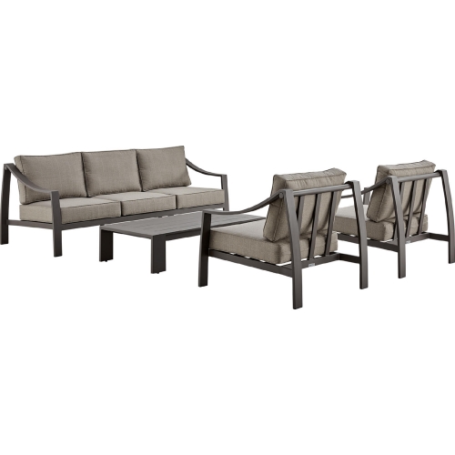 Armen Living 840254332416 Mongo 4 Piece Outdoor Sofa Set Dark Brown Aluminum & Fabric