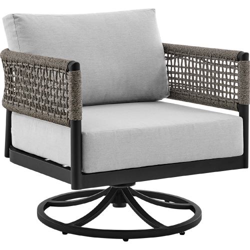 Armen Living Felicia Outdoor Swivel Rocking Chair in Black Aluminum, Rope & Grey Fabric