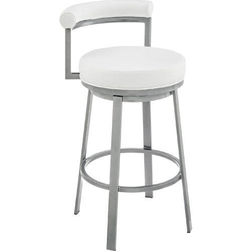 Armen Living 840254333536 Neura 30" Swivel Bar Stool Cloud Finish & White Leatherette