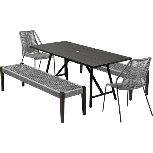 Armen Living Koala Clip & Camino 5 Piece Outdoor Dining Set in Dark Eucalyptus & Grey Rope