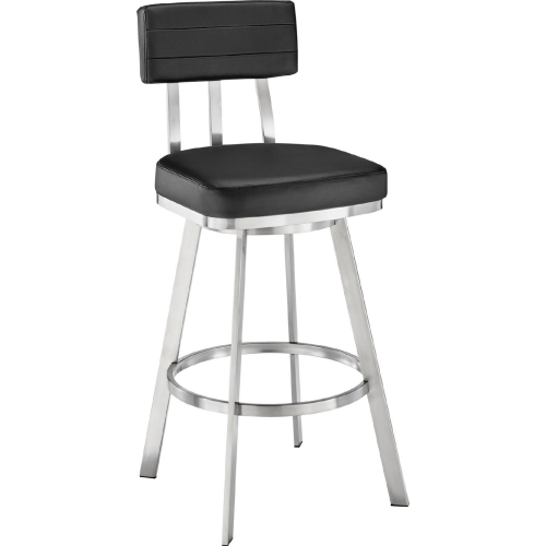 Armen Living 840254335264 Jinab Swivel 26" Counter Stool Brushed Stainless Steel & Black Leatherette