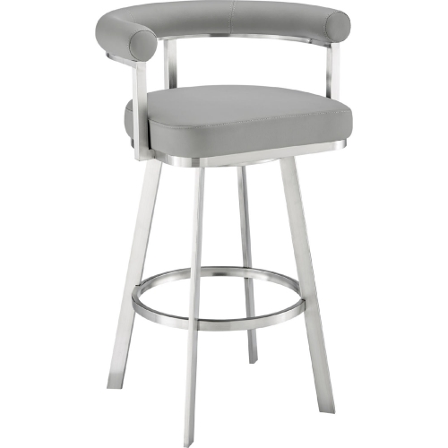 Armen Living 840254335615 Nolagam 26" Swivel Counter Stool Brushed Stainless Steel & Grey Leatherette
