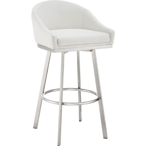 Armen Living Noran 29.5" Swivel Bar Stool in Brushed Stainless Steel & White Leatherette