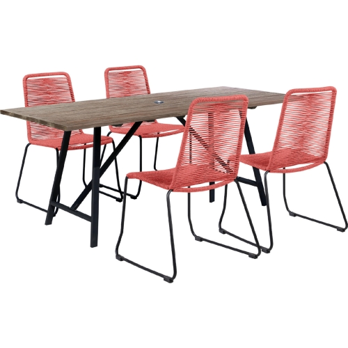 Armen Living Koala & Shasta 5 Piece Outdoor Dining Set in Light Eucalyptus & Brick Red Rope