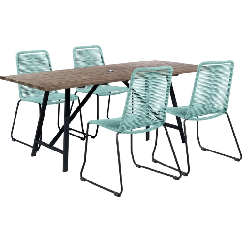 Armen Living 840254336407 Koala & Shasta 5 Piece Outdoor Dining Set Light Eucalyptus & Wasabi Rope