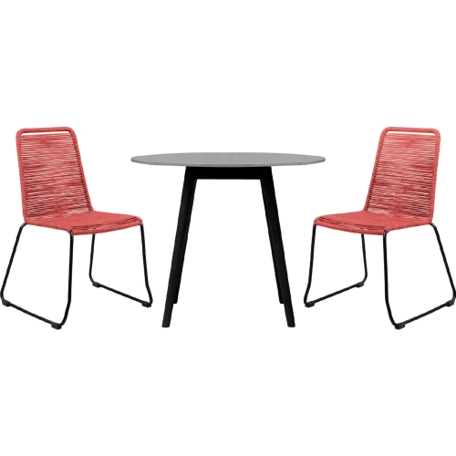 Armen Living Sydney & Shasta 3 Piece Outdoor Dining Set in Black Eucalyptus & Brick Red Rope