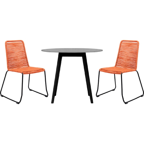 Armen Living Sydney & Shasta 3 Piece Outdoor Dining Set in Black Eucalyptus & Tangerine Rope