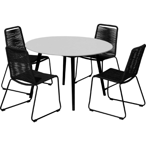 Armen Living 840254336469 Sydney & Shasta 5 Piece Outdoor Dining Set Black Eucalyptus & Black Rope