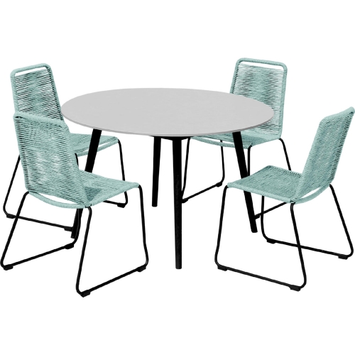 Armen Living 840254336483 Sydney & Shasta 5 Piece Outdoor Dining Set Black Eucalyptus & Wasabi Rope