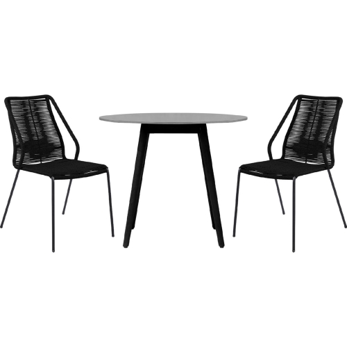 Armen Living Sydney & Clip 3 Piece Outdoor Dining Set in Black Eucalyptus & Black Rope