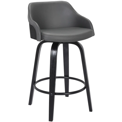 Armen Living LCAEBABLGR30 Alec 30" Swivel Bar Stool Black Brush Wood Finish & Grey Leatherette