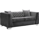 Armen Living Cambridge Arm Chair in Channel Tufted Dark Grey Velvet on Brushed Stainless