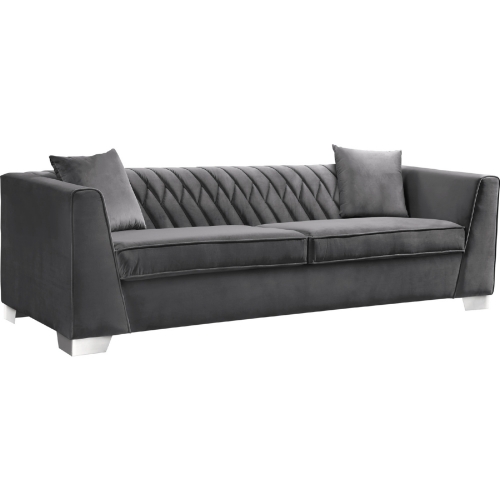 Armen Living Cambridge Sofa in Channel Tufted Dark Grey Velvet on Brushed Stainless