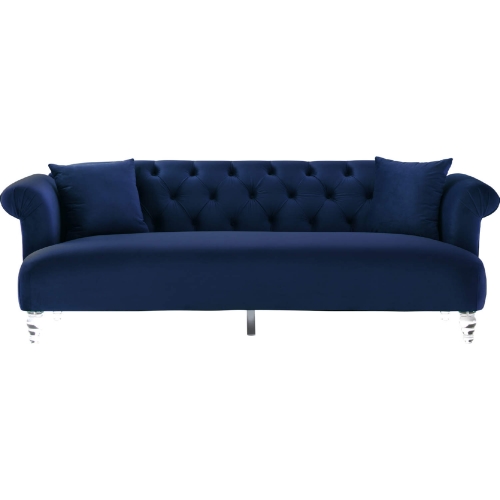 Armen Living Elegance Sofa in Blue Velvet with Acrylic Legs
