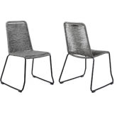 The Armen Living Shasta outdoor patio dining chair set are an exceptional fit your outdoor seating needs. Lightweight and durable, the Shasta's black powder coated finish steel frame allows for ease of rearrangement without compromising on quality or aesthetics. The Shasta's Black fishbone weave seat and back provide an ideal amount of comfort and support. The Shasta comes in your choice of black or grey and is sold in a set of two.