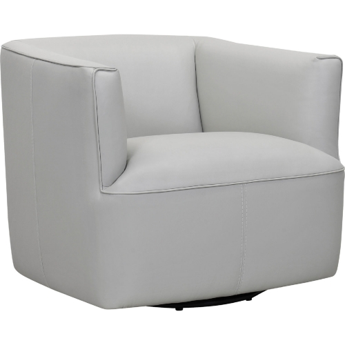 Armen Living Whitney Swivel Barrel Accent Chair in Dove Grey Genuine Leather
