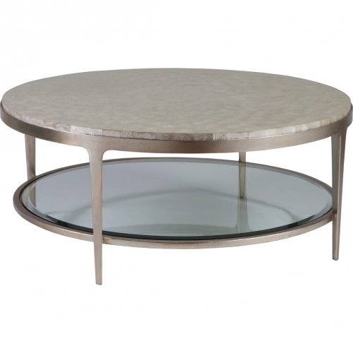 Artistica Home 2050-943C Gravitas Round Cocktail Table Capiz Shell Iron Tempered Glass