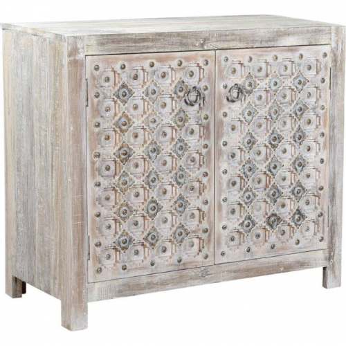 Classic Home 59026894 Alta 2 Door Diamond Carved Sideboard Antique White Reclaimed Wood