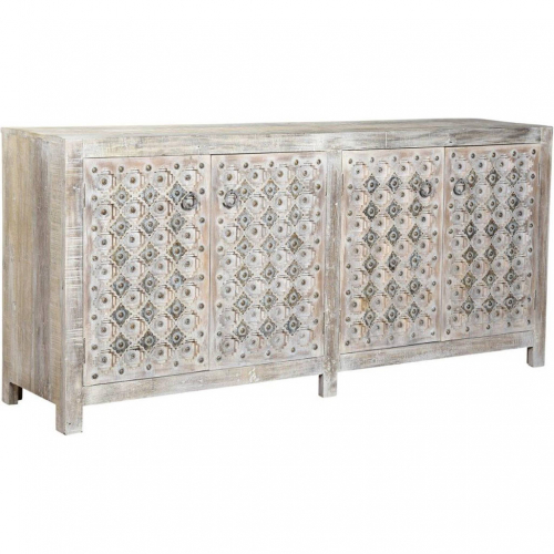 Classic Home 59026895 Alta 4 Door Diamond Carved Sideboard Antique White Reclaimed Wood