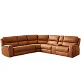 70815M Sectional in Grey. The 70815M Sectional by J&M Furniture brings luxurious comfort and smart functionality to your living space. Upholstered in premium full leather on the seat and armrests with a leather match on the sides and back, this sectional is as stylish as it is durable. Available in striking grey or bold pumpkin, it features three built in recliners for ultimate relaxation, making it perfect for lounging or entertaining. For added convenience, USB and USB-C ports are located on the left and right arm pieces to keep your devices charged. The integrated console is equipped with a storage compartment, cupholders, and two additional USB ports, ensuring everything you need is within reach. The 70815M Sectional seamlessly combines modern style, comfort, and practicality, making it an exceptional choice for any home.