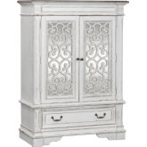 Liberty Furniture Abbey Park Queen Sleigh Bed in Antique White & Tufted Chenille