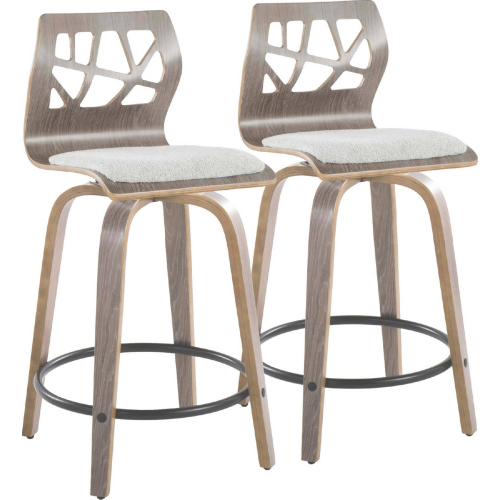 Lumisource Folia 24" Swivel Counter Stool in Light Grey Wood & Light Grey Fabric with Black Footrest (Set of 2)