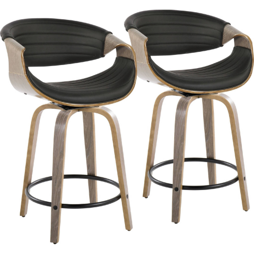 Lumisource B24-SYMPPU-GRTZQ2 LGYLGYBK2 Symphony 24" Swivel Counter Stool Light Grey Wood Black Leatherette (Set of 2)