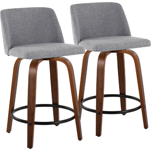 Lumisource B24-TRNOFB-GRTZQ2 WLGY2 Toriano 24" Swivel Counter Stool Walnut Wood Grey Fabric Black Footrest (Set of 2)