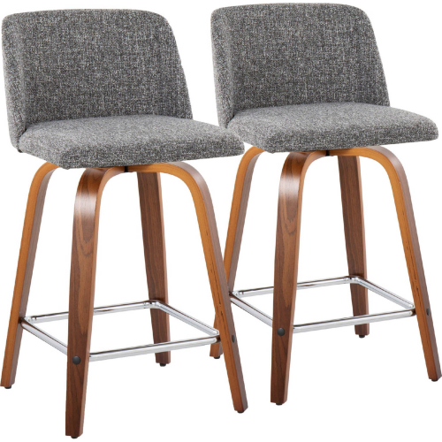 Lumisource B24-TRNO-GRTZS2 WLNGY2 Toriano 24" Swivel Counter Stool Walnut Wood Grey Noise Fabric Chrome Footrest (Set of 2)