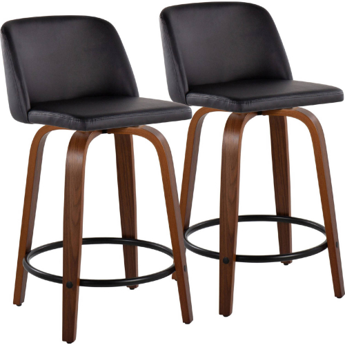 Lumisource B24-TRNOPU-GRTZQ2 WLBK2 Toriano 24" Swivel Counter Stool Walnut Wood Black Leatherette Black Footrest (Set of 2)