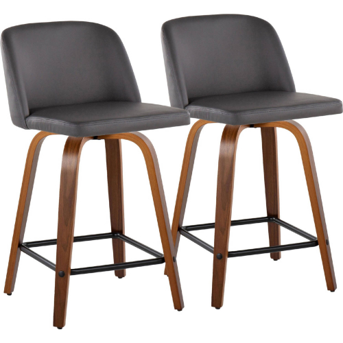 Lumisource B24-TRNOPU-GRTZX2 WLGY2 Toriano 24" Swivel Counter Stool Walnut Wood Grey Leatherette Black Footrest (Set of 2)