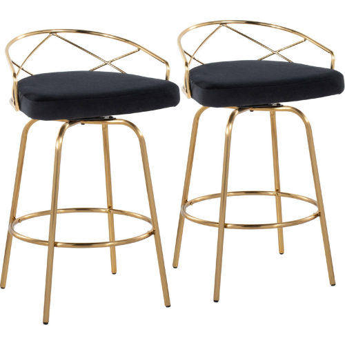 Lumisource Charlotte 26" Swivel Counter Stool in Gold & Black Velvet with Round Footrest (Set of 2)